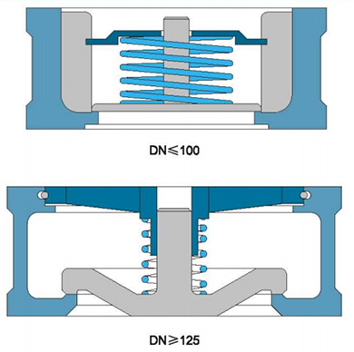 該產(chǎn)品采用對夾式連接,結(jié)構(gòu)緊湊,閥瓣沿著中心定位作升降運(yùn)動,由于閥瓣的關(guān)閉行程短,并有彈簧加載,關(guān)閉速度快,可顯著減少水錘現(xiàn)象。產(chǎn)品具有體積小、重量輕、動作靈敏、密封可靠、安裝方便等特點。
